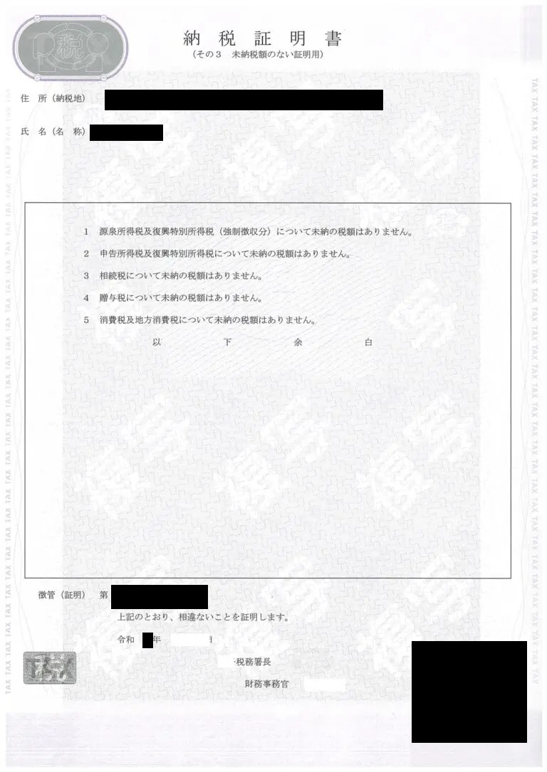 ・未納がないことの証明(法人納税証明書その3の3)